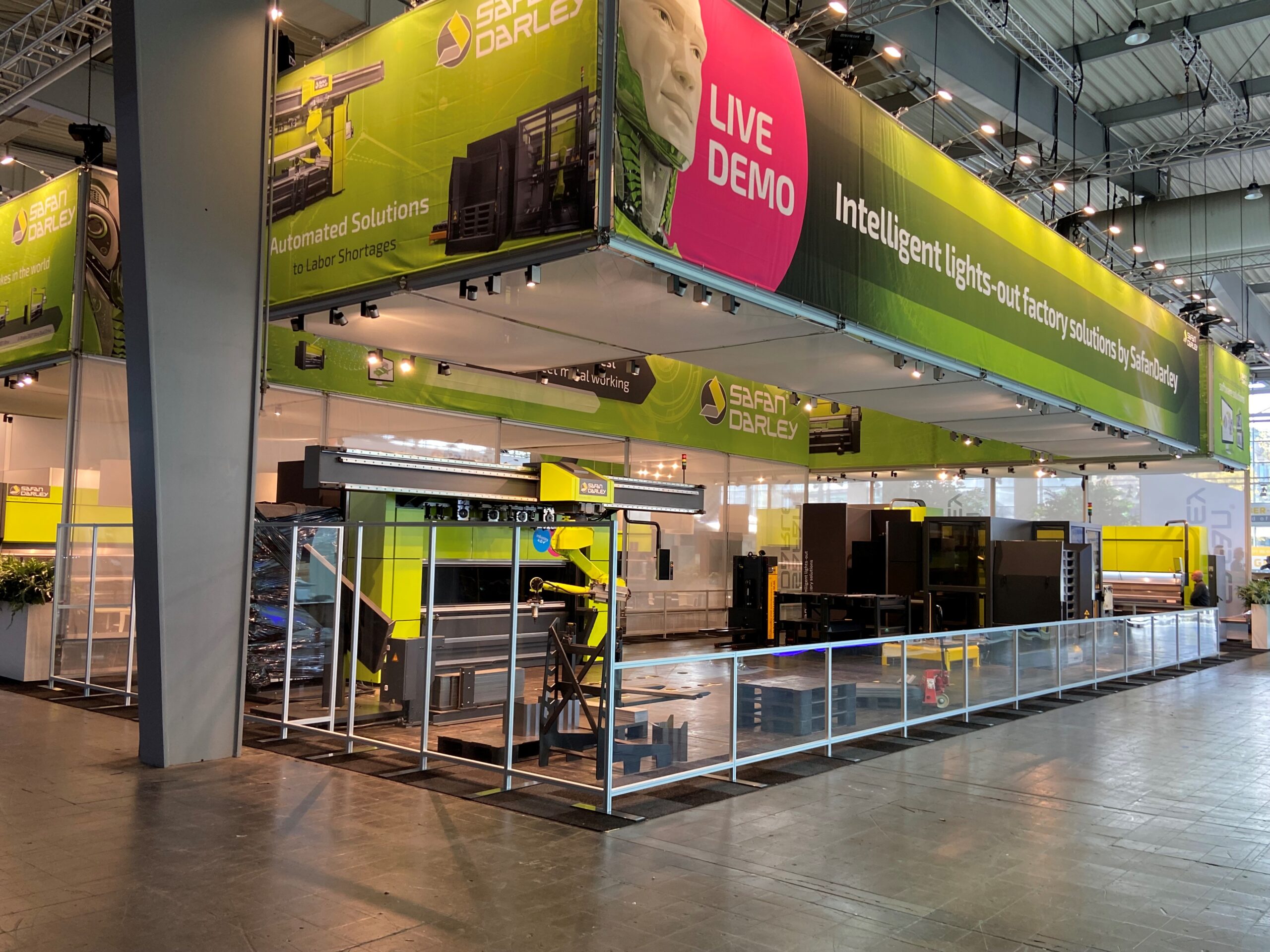 Der Stand auf der Lamiera Mailand, Blechexpo Stuttgart, Euroblech Hannover, Technishow Utrecht, Tolexpo Paris und Fabtech Chicago.