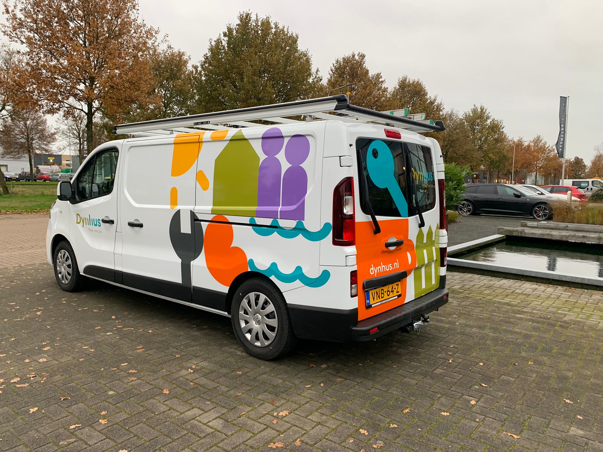Voor Dynhus, de maatschappelijke huisvester in Zuidwest Friesland, hebben wij de gevelreclame en autobelettering van het volledige wagenpark verzorgd.